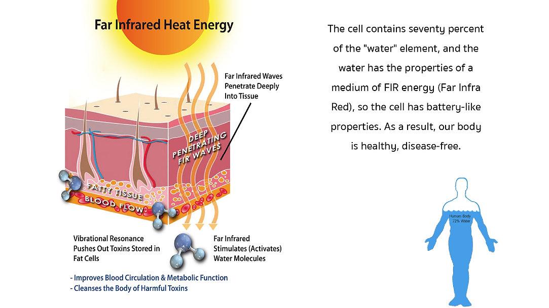 Vì tế bào chứa đến 70% là nước, hoạt động như một môi trường trung gian cho năng lượng FIR, nên tế bào hoạt động như pin. Khi được nạp đầy năng lượng, tế bào hoạt động hiệu quả, dẫn đến sức khỏe tốt hơn và giảm nguy cơ bệnh tật.