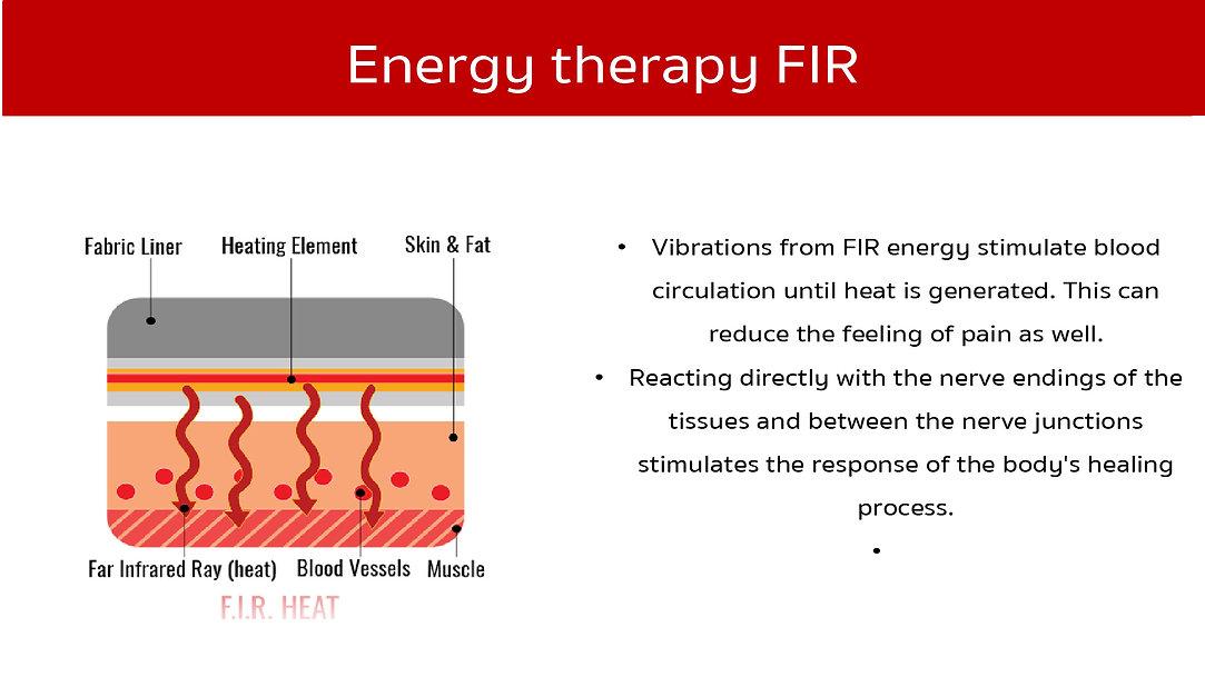 Nhiệt từ năng lượng FIR tương tác trực tiếp với dây thần kinh và đầu mô, kích thích quá trình chữa lành tự nhiên của cơ thể và giảm cảm giác đau.